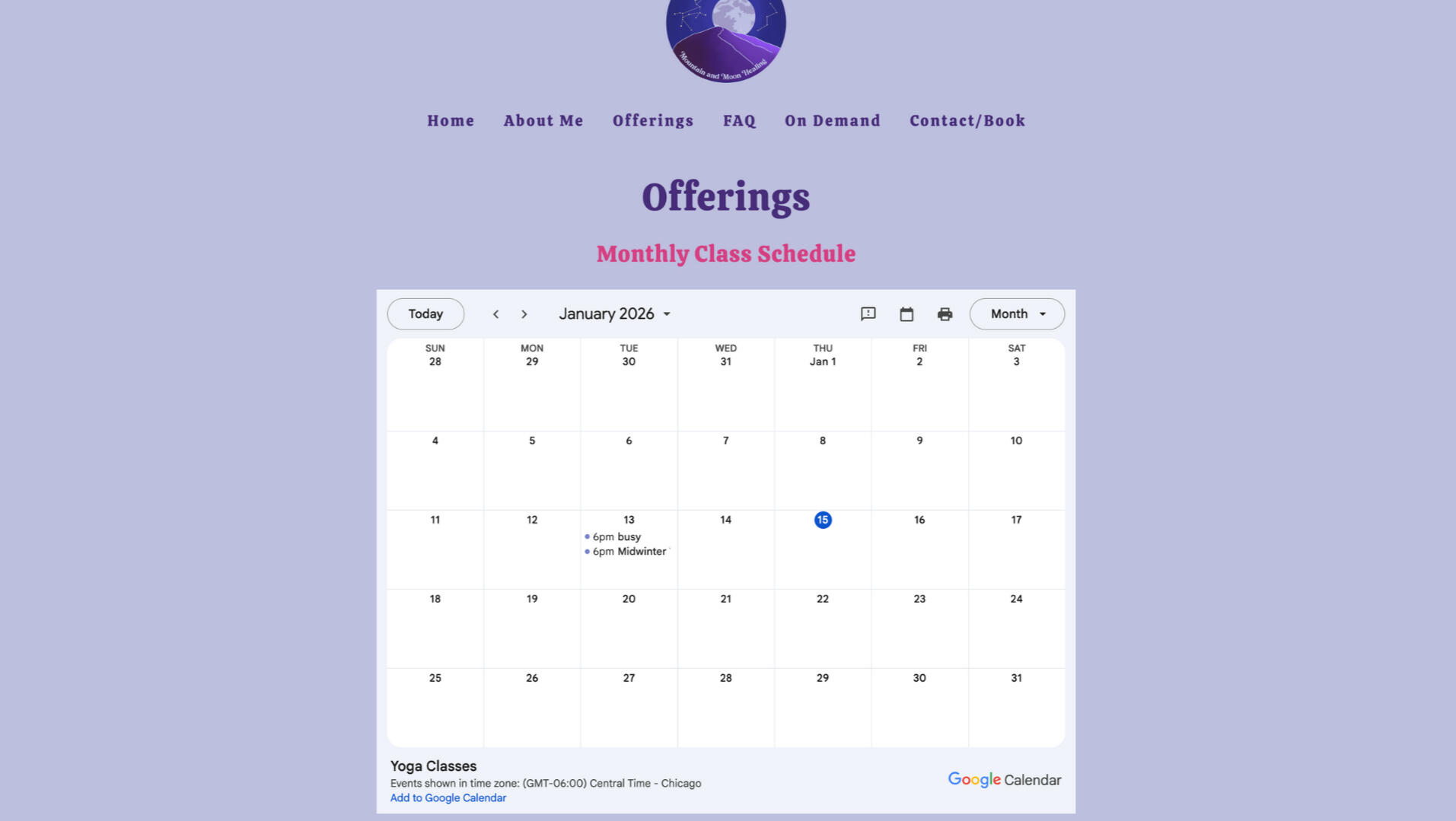 Integrated a live Google Calendar for monthly class schedules