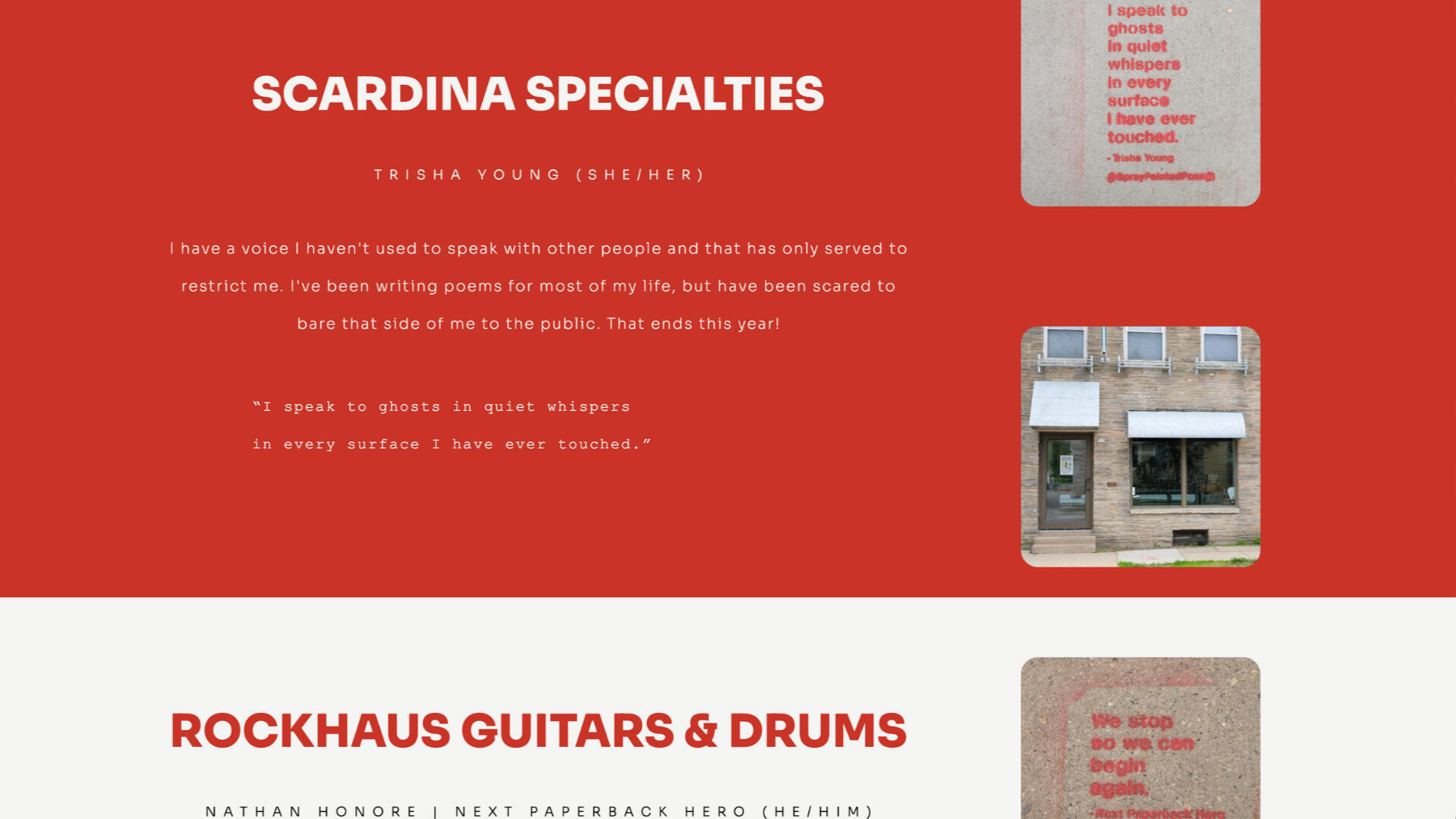 Spray Painted Poems is a community-based poetry project that highlights local poets, businesses, and public spaces. I led the project from concept through execution, designing the brand, building the website, and creating multimedia storytelling to support a growing creative community.
