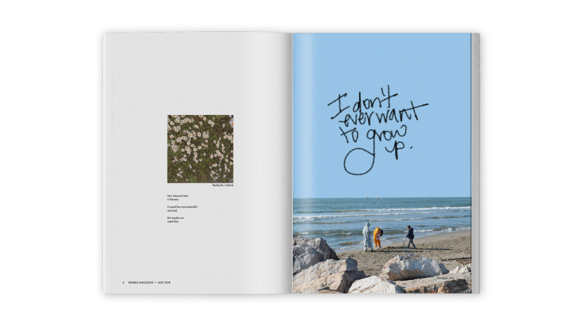 Ramble Magazine is an experimental travel and culture publication rooted in human-centered storytelling and a deep curiosity about place. Conceived as a fully self-directed editorial project, Ramble weaves long- and short-form journalism, creative nonfiction, photography, and intentional design into a cohesive narrative experience. The magazine explores travel not as spectacle, but as a relationship, with people, connection, and emotional truth at the helm.