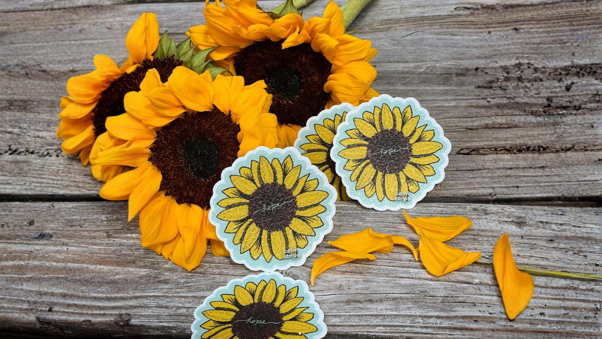 Calm Strips is an innovative small business creating textured sensory adhesive strips designed to help manage anxiety, reduce stress, and increase focus. Their products are widely used by neurodivergent folks, students, educators, and anyone seeking subtle grounding tools in everyday life. Since launching, Calm Strips has sold over 150,000 units and has been featured on Shark Tank for their thoughtful approach to mental wellness.I first collaborated with Calm Strips through an art contest, where selected designs were printed as limited-edition Calm Strips. My sunflower design was chosen as a winner and became one of their best-selling limited releases, marking the beginning of an ongoing creative relationship.