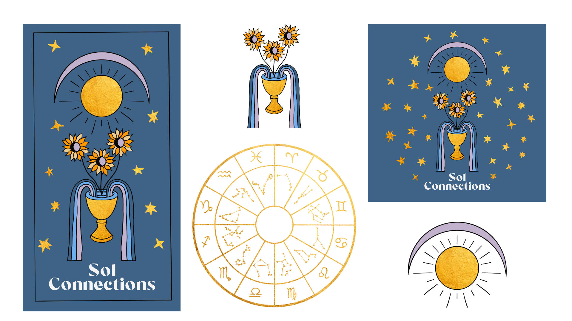 Designed the logo and visual identity for Sol Connections, incorporating specific tarot archetypes including the Three of Cups and The Sun