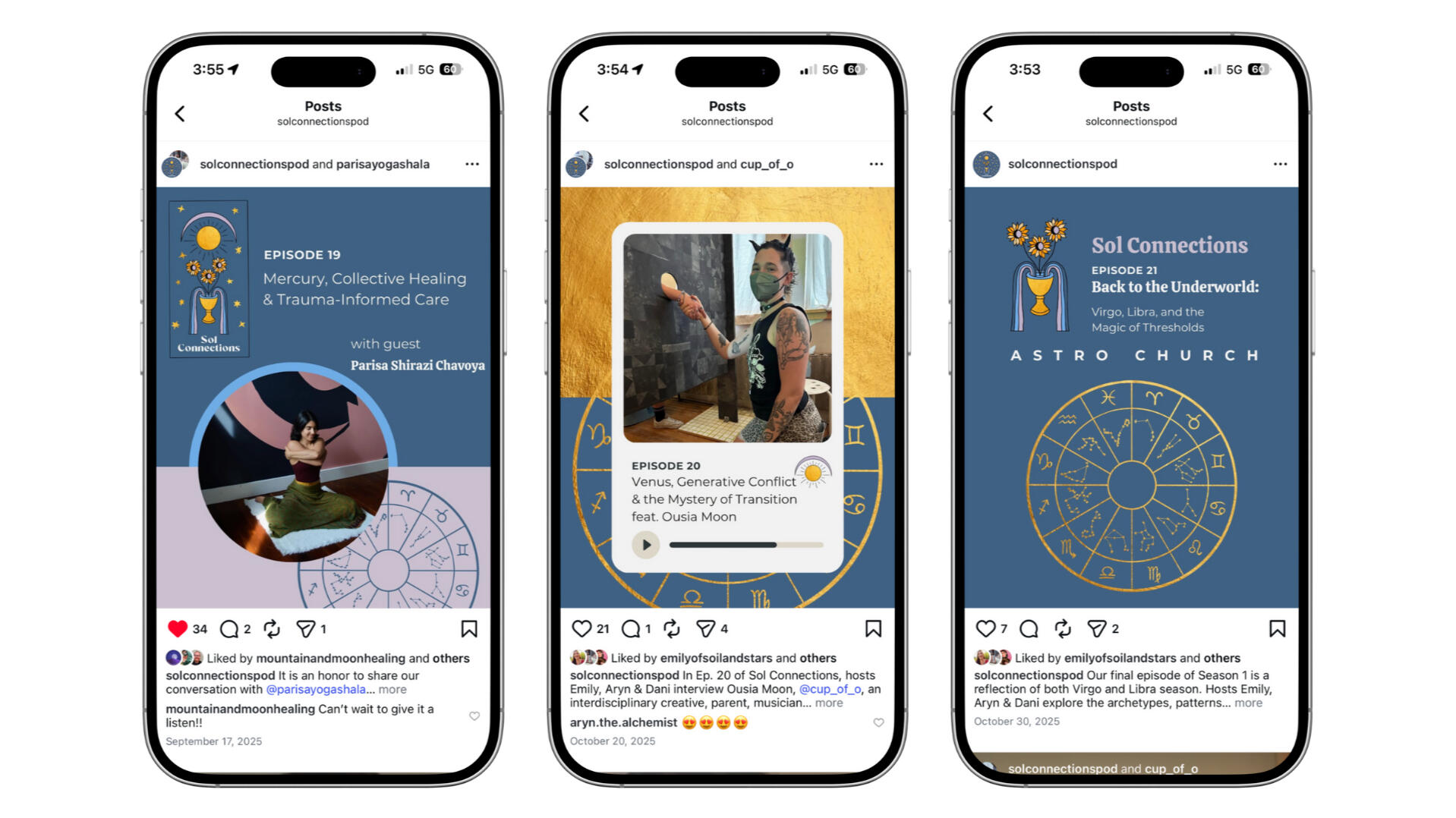 Soil and Stars and Sol Connections are distinct mystical media projects rooted in astrology, Earth-honoring spirituality, and community care. They explore cycles, relationships, and meaning-making through storytelling, ritual, and archetype.I collaborated closely with the creators of both projects to translate their expansive, intuitive visions into cohesive visual identities. The work blends symbolism, warmth, and clarity, creating brands that feel enchanting while remaining accessible and usable across digital platforms.