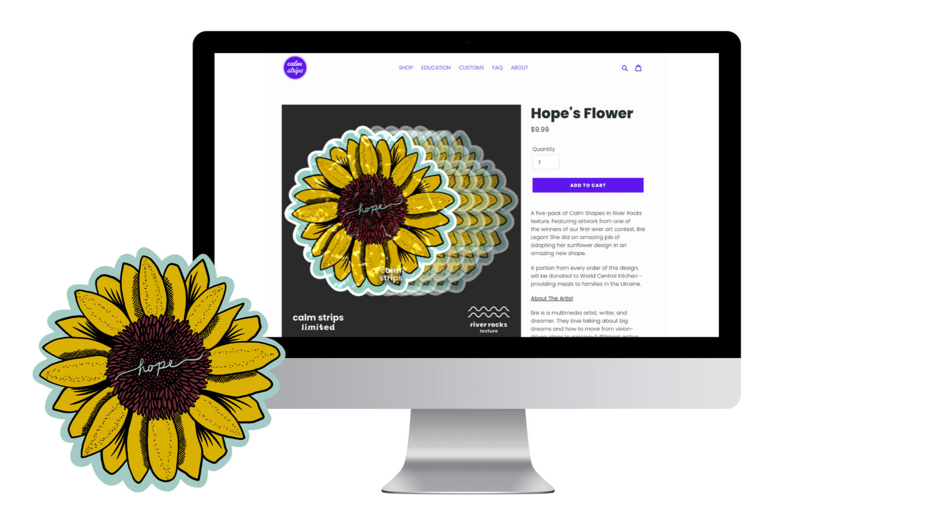 Collaborated with the Calm Strips team on a second sunflower design, Hope’s Flower, to support fundraising efforts for Ukraine