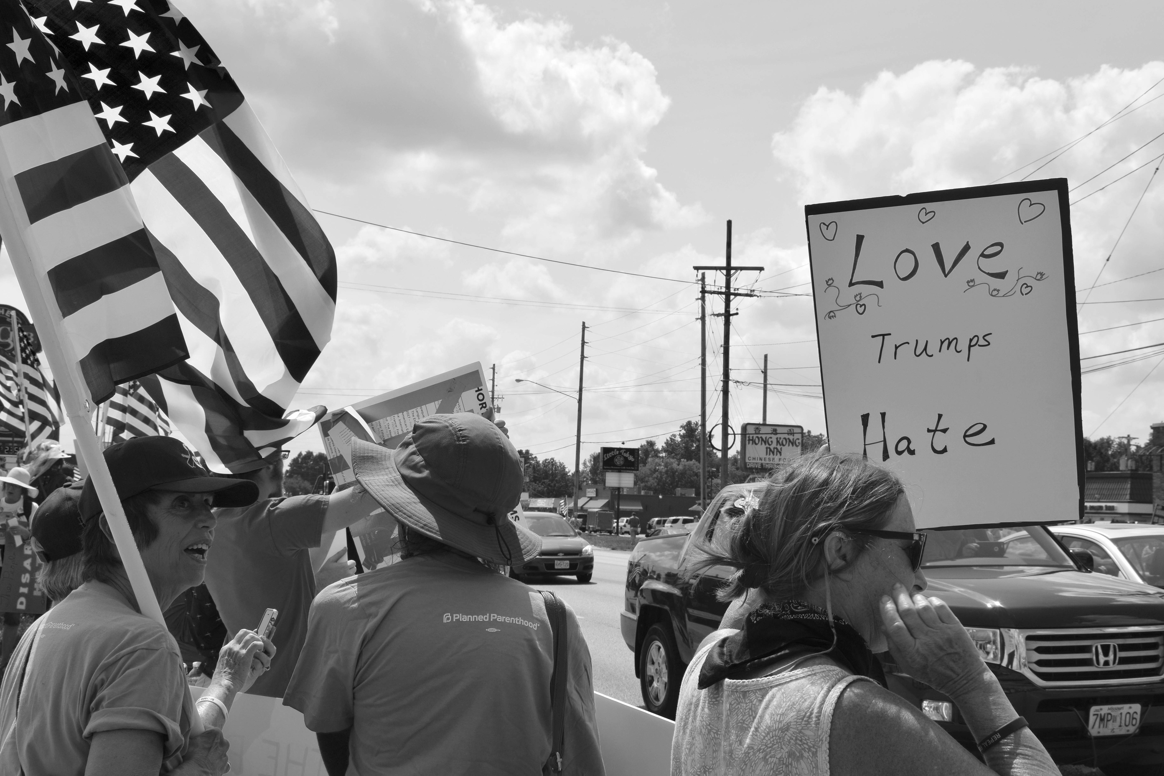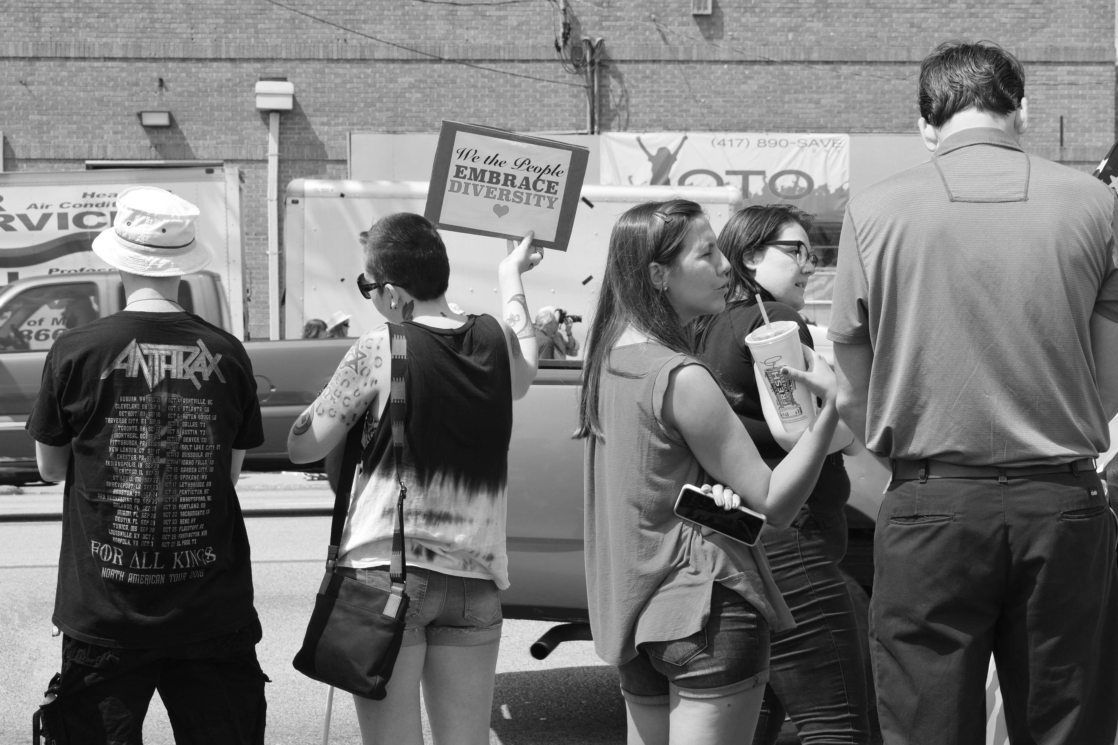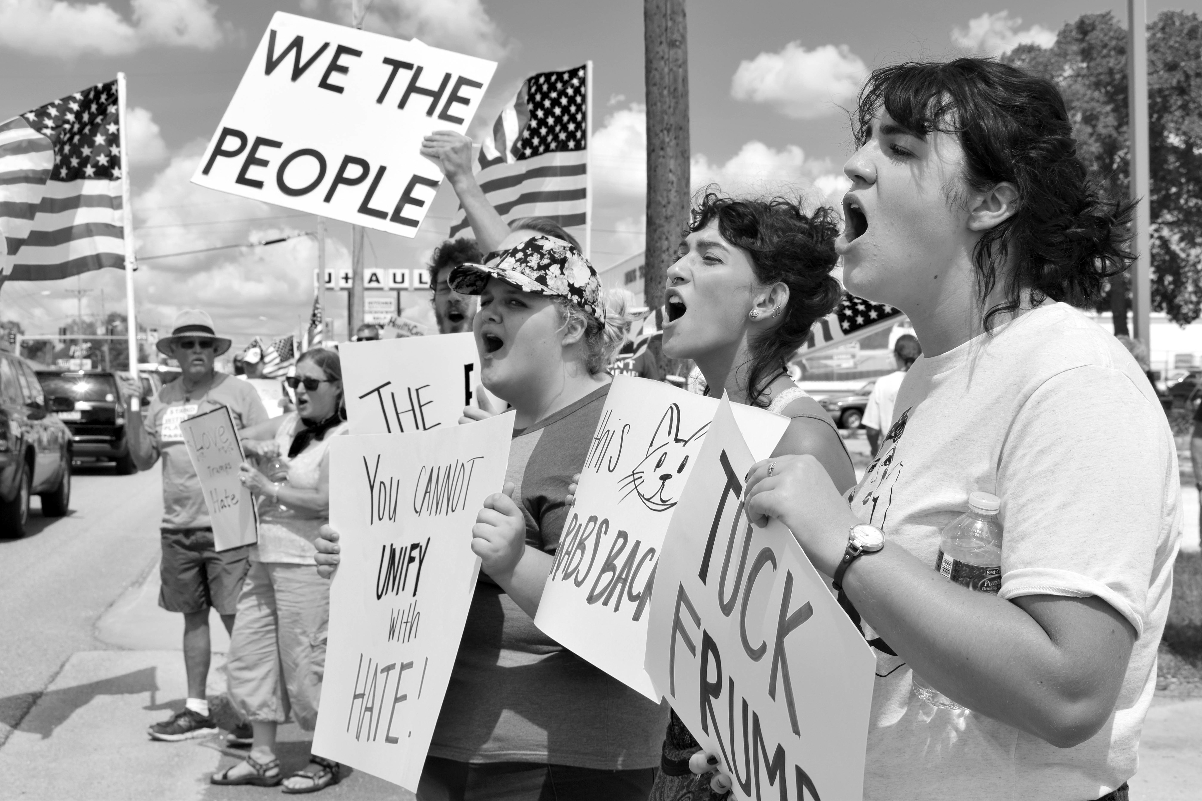 Small moments of unity in a rural, red state. Springfield, MO, August 30, 2017. // trump protest rally