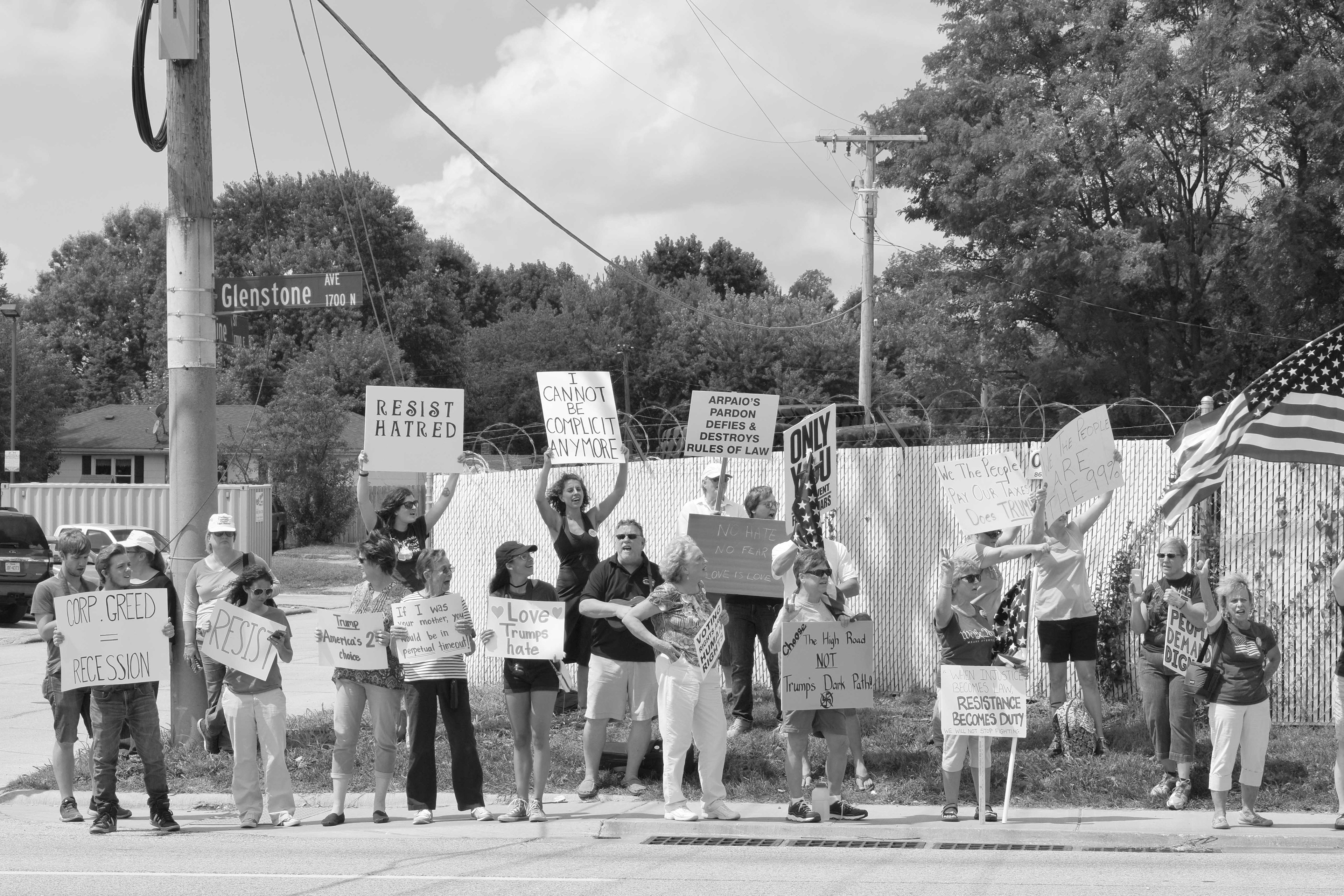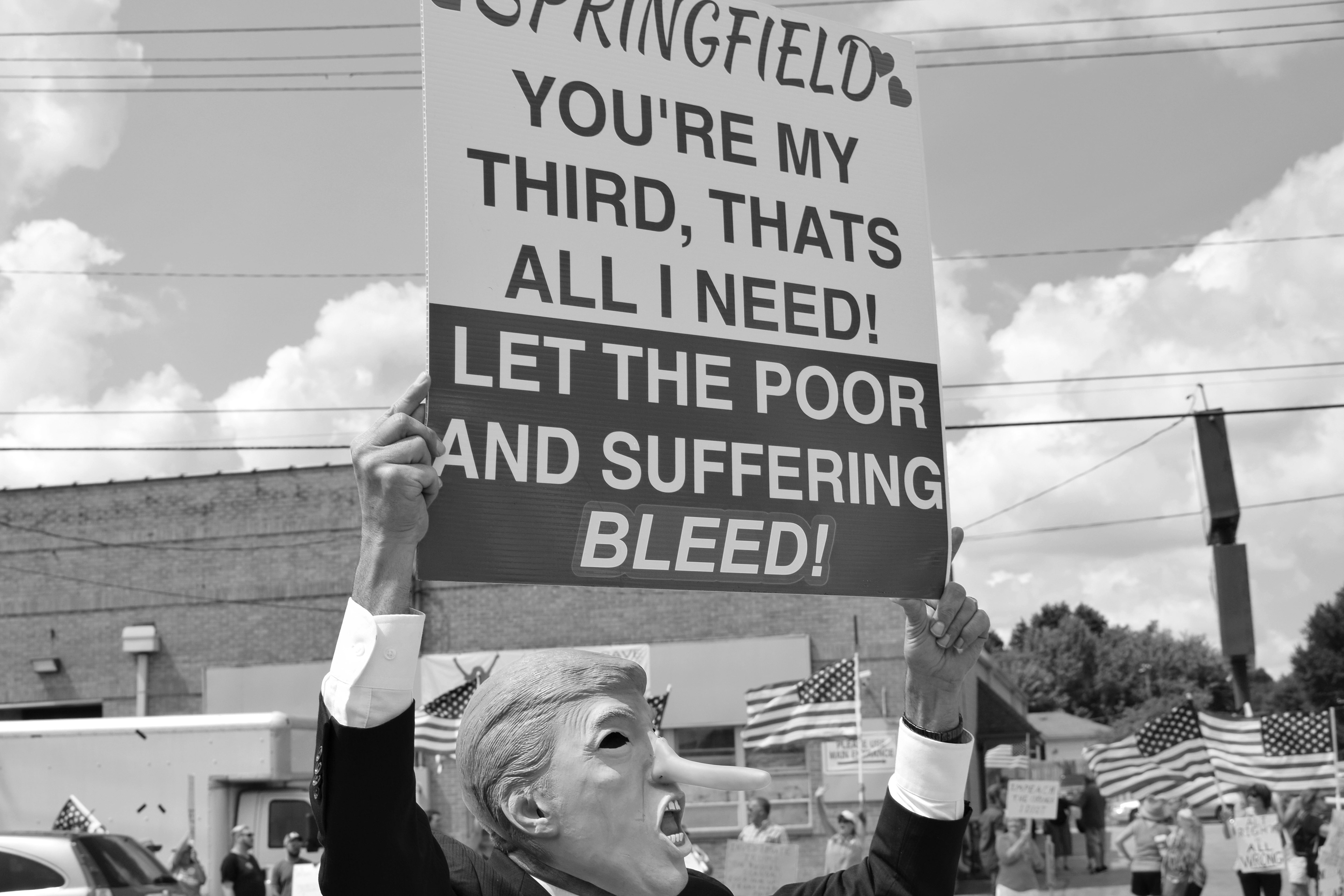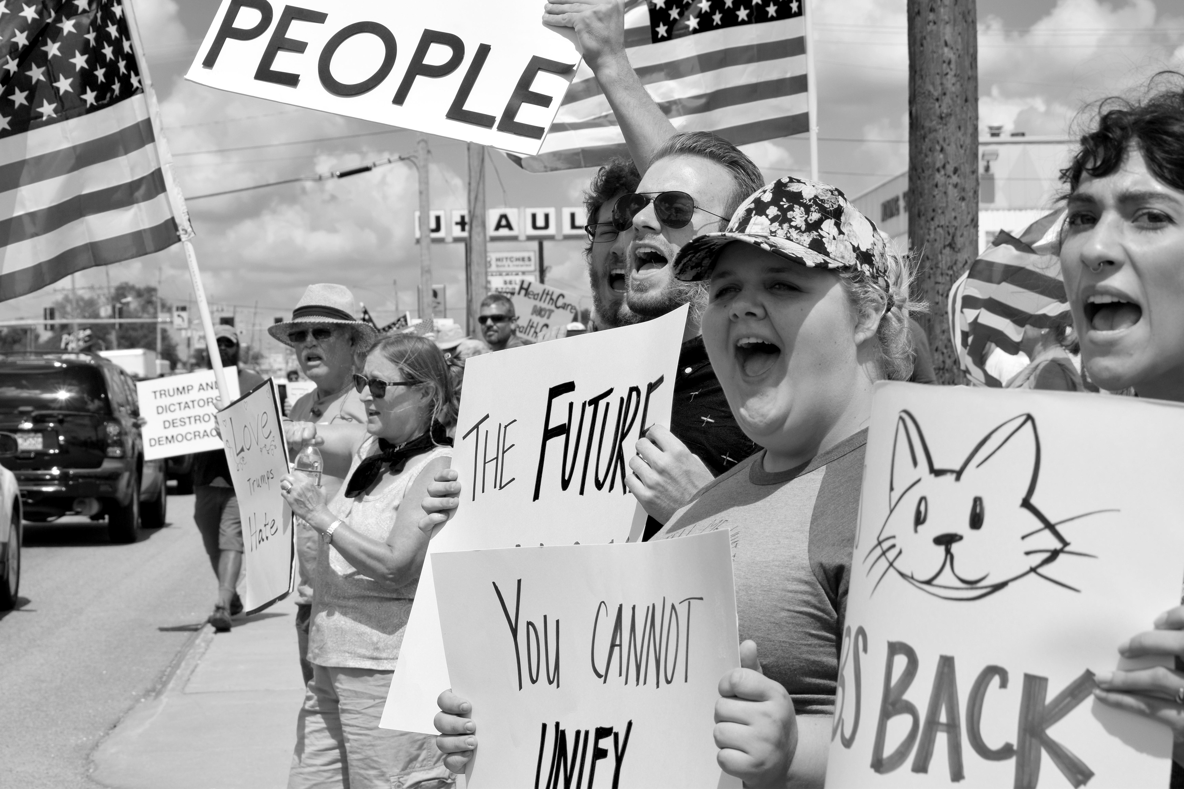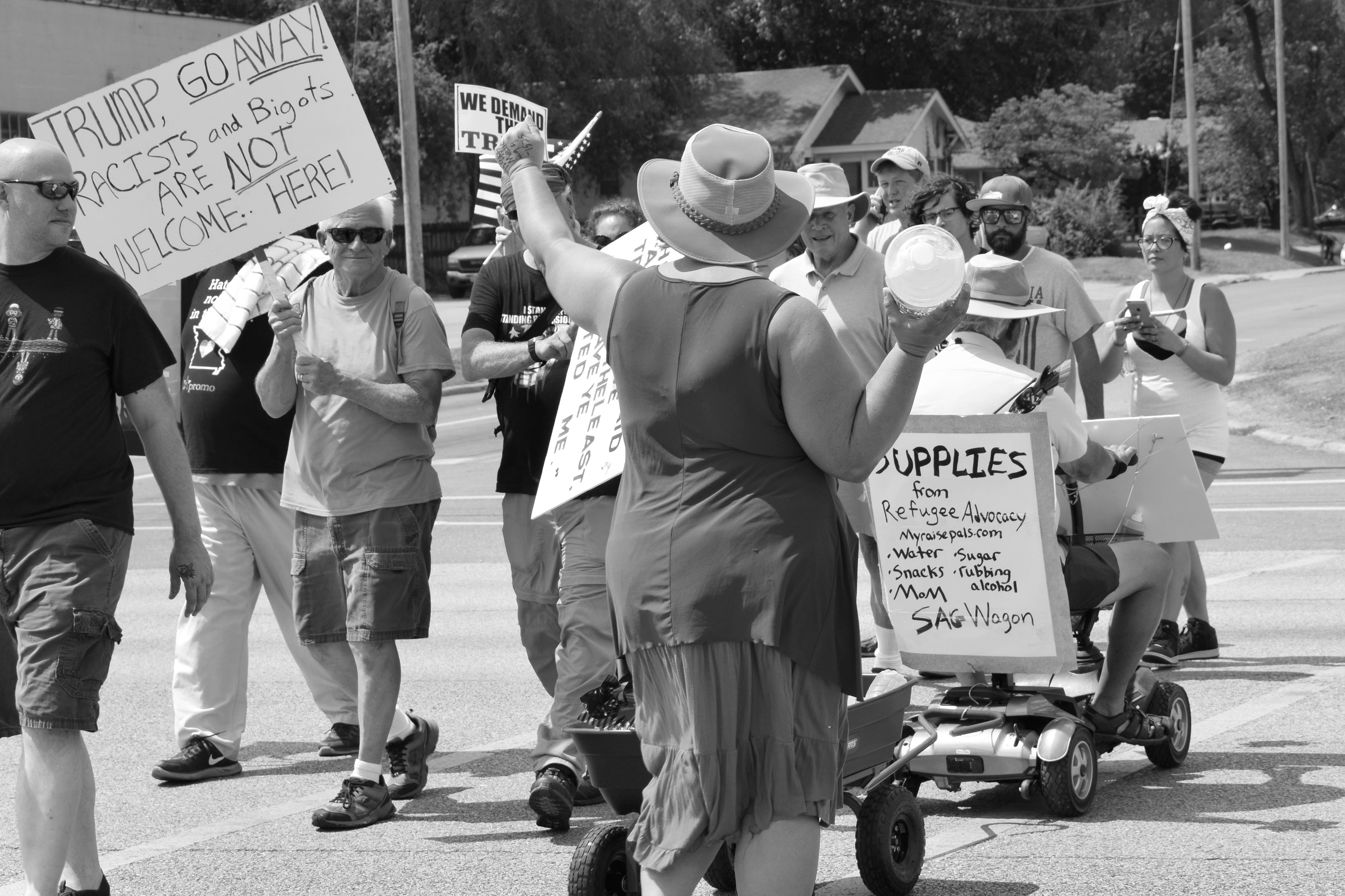 Small moments of unity in a rural, red state. Springfield, MO, August 30, 2017. // trump protest rally